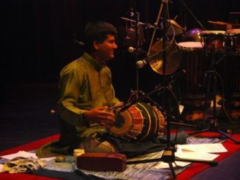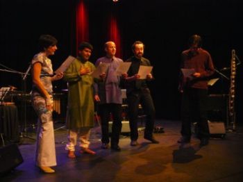 ..gandhi bazaar Esra Dalfidan – voiceB. C. Manjunath – Indian percussion and cajonEnric Monfort – cajon, marimba and percussionRaphael Vanoli – electric guitarNed McGowan – flute, bamboo flute, contrabass flute Gandhi Bazaar is a new group I have formed for a tour by the Music World Series Foundation. In combining five musicians with various backgrounds in jazz, classical, improvised, traditional Indian, Turkish or Flamenco, I have tried to create a form of collective chamber music which uses techniques from all these genres. Commissioned by the Dutch Fund for the Performing Arts, the music has been composed to bring to life texts by the Dutch/Iranian poet Nafiss Nia. Our theme is reincarnation – not particularly the religious belief in life after death, but rather about new cycles that one goes through during a single lifetime. Without consciously stealing a cliché in this time of a new politic, there seems to be a lot of change happening around on many levels. Friends are entering into new stages of life, how things are done is changing, new attitudes are emerging, people are changing location, jobs, etc… Nafiss has written beautiful texts to approach this subject in many ways. Gandhi Bazaar Review:”De projecten van de Music World Series (MWS) kennen meestal een hoog improvisatorisch gehalte, aangezien veel van de deelnemers een stevige ondergrondin de jazz met zich meebrengen. Fluitist en componist Ned McGowan, oprichter van Karnatic Lab, koos voor zíjn MWS-project voor grotendeels uitgewerkte composities, hoewel hij genoeg ruimte voor speelse interactie overliet. Als uitgangspunt voor de stukken nam McGowan de poëzie van de Nederlands-Iraanse dichteres Nafiss Nia. Vervolgens stelde hij een opmerkelijk ensemble samen, met muzikanten uit zeer uiteenlopende disciplines. Het concept pakte al bijde allereerste voorstelling wonderwel uit, mede dankzij het feit dat er flink gerepeteerd was. Dat leidde onder meer tot een naadloos gesynchroniseerd slagwerkduel tussen B.C. Manjunath op mridangam (de Zuid-Indiase tegenhanger van de tabla) en Enric Monfort op cajon, vol razend snelle ritmische figuren. McGowan zelf gebruikte zijn imposante contrabasfluit soms als dirigeerstokje en zorgde zo wat voor een breuk door eventjes zijn ‘o c t a v e r ’ (elektronisch verlagings effect) in te schakelen. Het meest verrassend warende vocale bijdragen van de jonge zangeres Esra Dalfidan – tot dusver vooral bekend als jazzartiest –die ver buiten haar vertrouwde domein opereerdeen ook het Turkse idioom tot in de puntjes blijkt te beheersen. Behalve met haar indringende voordracht maakte ze indruk met haar loepzuivere intonatie, zelfs wanneer gifmenger Raphael Vanoli de meest bizarre dissonanten uit zijn Stratocaster peuterde. Hoewel de naam Gandhi Bazaar Indiase klanken suggereert, blijft het etnische aspect van de voorstelling beperkt tot het karnatische getrommel van Manjunath. Voor wie bekend is met de projecten van Karnatic Lab in Amsterdam zal datgeen verrassing zijn, want daar wordt vooral inspiratie geput uit de compositorische principes van de Zuid-Indiase klassieke muzieken niet zo zeer uit de typisch Indiase klankkleuren. Tijdens de tweede set was plaats ingeruimd voor eenvrolijk intermezzo, waarbij de vijf muzikanten naar vorenkwamen voor een ritmisch complex, woordloos stemmenspel, gebaseerd op de karnatische instructietaal konnakol (waarin verschillende aanslag-technieken worden aangeduid met syllaben). Een fraai voorbeeld van vrijzinnig en creatief hergebruik van traditionele stijlvormen en technieken. “Ton Maas – Volkskrant 1 dec. 2008