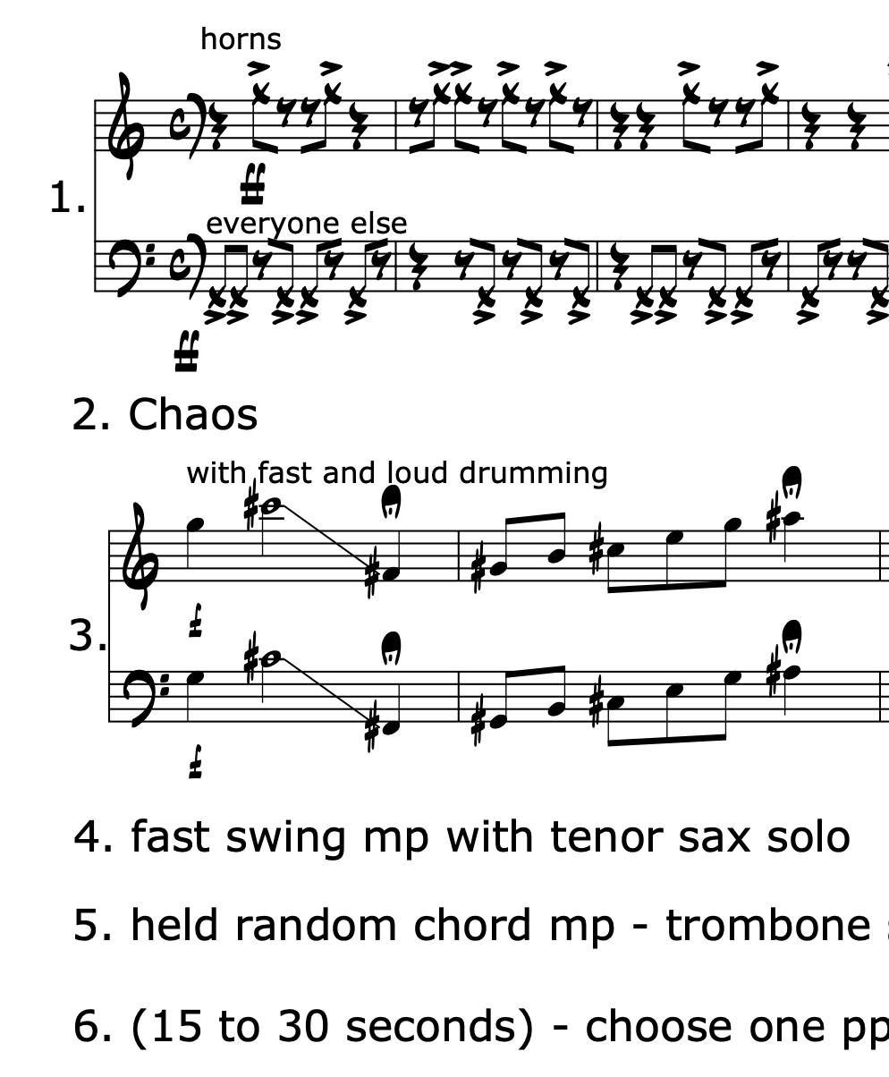 Jazz ensemble Duration: 1′ 30″ For the Spinifex Orchestra First performance: Karnatic Lab, Badcuyp Amsterdam, December 12, 2006 Available on …