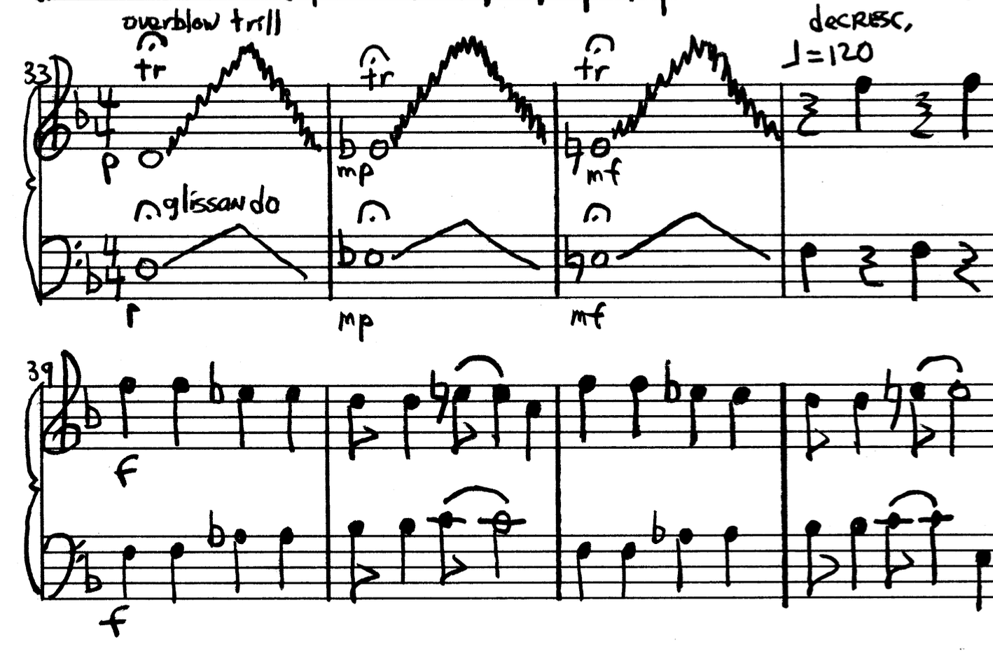 Contrabass flute and percussion Bass clarinet and percussion Contrabass flute and piano Duration: c. 13′ Commissioned by and written for …